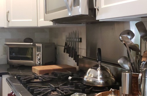 We have sharp knives, a pantry full of spices, abundant cookware, a cook's delight. Guests are invited to store skis, snowboards, or bikes in our garage.