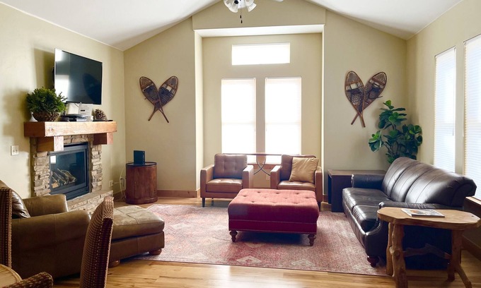 This 2091 sq foot 2 bedroom, luxury mountain lodge is just a 4 minute walk to the lifts at Park City Mountain Resort and directly on the free citywide shuttle route (outside front door). Starbucks, grocery, Rite Aid, sport's stores (Jan's and Coles), grocery, old town restaurants, and the movie theater are all within a few blocks of Moose Lodge. City Park and the Rail trail are accessible from across the street. City park offers open lawn space, a softball diamond, sand volleyball, tennis, basketball, a playground and a state-of-the-art Skateboard Park. The golf course and Nordic skiing are also a block away. This is the absolute best location, close to everything you would want on your vacation, yet also very quiet. This home is kid-friendly with many toys for playing and videos (>40) and book library. The large great room is popular for guests to congregate and relax after a long ski day. It is a first-floor unit - very convenient for coming and going. Two assigned covered parking spots are included with rental. Additional parking permit for street parking available.