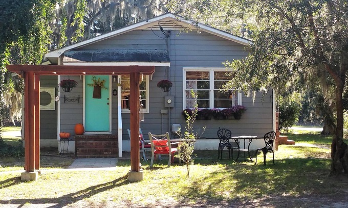 Sleeps 8 in a quaint cottage in rural setting. Centrally located 7 miles from Hunting Island State Park or Historic Beaufort, SC. And if you are a military family in town for Graduation, that's only 11 miles away! When you're done taking in the town or ready to rinse off from the beach, come to the cottage and put your feet up. Enjoy outdoor seating in the shade of oak trees during the day or light the firepit come nightfall and relax while you sit and talk about your day. Any way you look at it, memories will be made.