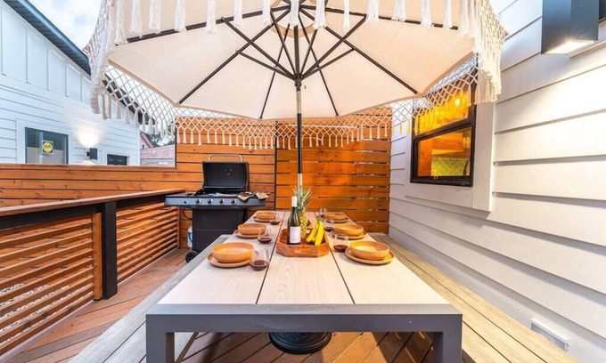 Outdoor Chimney: Gather around the outdoor chimney in the spacious backyard for cozy evenings and s'mores under the stars. It's the perfect spot to unwind and create lasting memories with your loved ones.