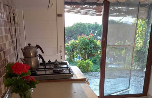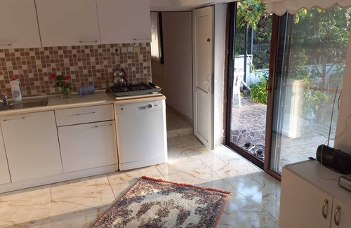 The garden, living room and big bedroom has amazing sea view. You may do BBQ or breakfast at the garden with great view of the sea and feel the soft and cooling wind of bodrum. It is in private site and there is pool you may benefit free, you will not pay for sunbed and umbrella at the private beach and the pool of the site. It is a romantic and safe location. Best for 3 people, 4 or 5 people possible.