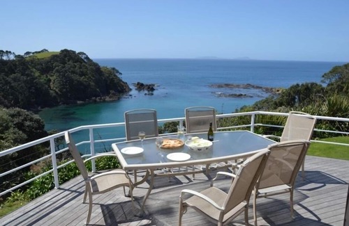 WINNER of Bronze Best Setting 2016 in the NZ wide Bookabach awards this elevated absolute waterfront property enjoys spectacular sea views to the Poor Knight Islands / Whananaki coastline from nearly every room in the house. Set on 5 acres, fringed by pohutukawas and native bush along the shoreline this unique property enjoys two private beaches and its own mooring in a sheltered, all weather sandy bay.