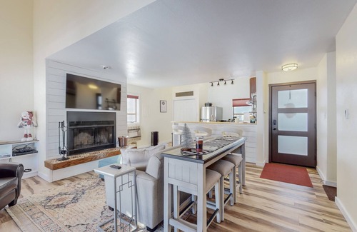 Open living room with great views of the mountains from every window! Cozy wood burning fireplace perfect for those winter days! One of the best location with views of the mountain and slopes from the balcony! Full washer and dryer in unit! Half bath down and full bedroom and bath up with comfy queen size bed and twin bunk bed. Updated Kitchen with everything needed for cooking! Coffee maker( we provide coffee and filters), toaster, tea pot, large crock pot, some spices for cooking, vegetable oil. Big balcony to enjoy mountain view, ski slopes, night skiing, bike riders! Plenty of parking by the condo also big front porch to park bikes and ski gear!