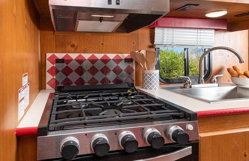 Stay close to the ones that you love the most. Bumble Bee is a RV trailer available for short term rentals for a nurse, work crew, electricians, handymen. It has 1 Bedroom and 1 Bathroom. It has a unique design.