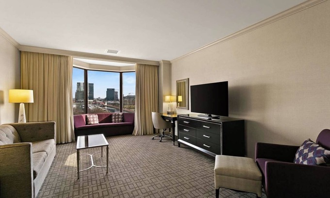 If you are looking for a waterfront stay in the heart of Baltimore, this hotel is the perfect choice for you. You will be minutes away from top attractions like the National Aquarium, the Maryland Science Center, and Oriole Park at Camden Yards. You can also enjoy the famous crab cakes on the waterfront or shop at Harbor Place. You will love the spacious, elegant rooms with a flat-screen TV and plush bed. You will also have access to a range of amenities, such as an indoor pool, a fitness center, and a lobby café that serves breakfast and lunch items to go. On Wednesday - Saturday evenings, you can dine at Explorers, an American Gastropub that offers appetizers and cocktails. This hotel is an award-winning property that has received the AAA Four Diamond Award and TripAdvisor's 2021 Certificate of Excellence. You will be impressed by this hotel's refinement, charm, and laid-back style. Experience the best of Baltimore from this luxurious waterfront hotel.