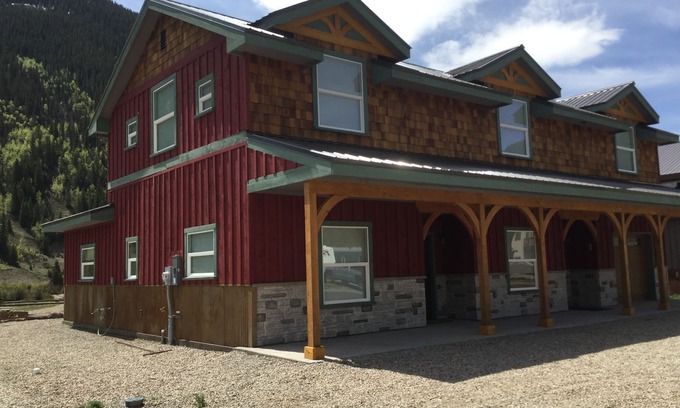 A brand new build - finished in May 2019. Three bedrooms, two baths, in a residential neighborhood in the town of Silverton. Some of the best views of Kendall Mountain from this house. The Altitude Adjustment has a huge yard, fire pit, RV parking and plug-in, granite kitchen counters, laminate flooring, and TV's throughout the house and per bedroom. Great yard to have a small wedding or family gathering (please inquire first). Ride the train up to almost the front door. A ton of parking for trucks and trailers, easy pull through and around access.