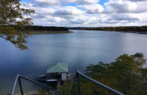 The most spectacular views of Lake Travis! Two Rivers is at the confluence of the Pedernales River and the Colorado River. Lake Travis at your finger tips. Bring your camera! We have: a large dock for you to enjoy kayaking, swimming, or tie your boat up to, gas grill, hot tub (11/1 -3/31 ONLY), firepit (bring your guitar), Stonehouse Vineyard 1,000 ft away, pool table, bocce ball, sleeps 8 to 10 comfortably, 25 minutes from civilization (if you need it!). We know you will enjoy your stay.