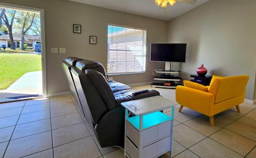 Providing a garden, Beth's Modern at Inverness features accommodations in Inverness. This property offers access to a patio, free private parking, and free Wifi. Outdoor seating is also available at the vacation home. Leading onto a terrace with quiet street views, the spacious vacation home consists of 3 bedrooms. The air-conditioned vacation home also provides a flat-screen TV, a fully equipped kitchen with a dishwasher, a seating area, washing machine, and 2 bathrooms with a walk-in shower and a bath. The vacation home offers bed linen, towels, and laundry service. Homosassa Springs Wildlife State Park is 20 miles from Beth's Modern at Inverness, while Homosassa Springs is 20 miles away. Tampa International Airport is 67 miles from the property.