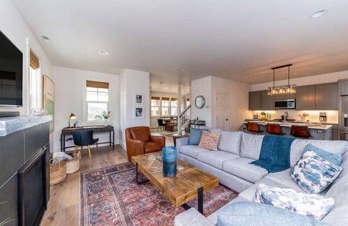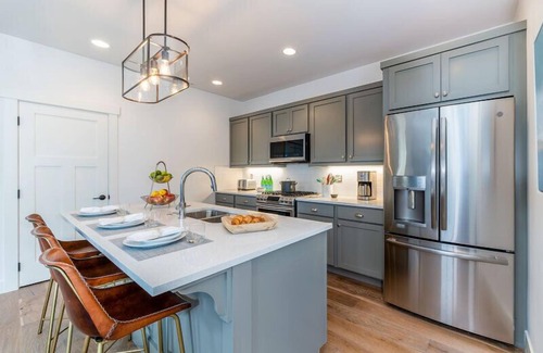 The furnishings are family-friendly and comfortable. The light-filled house has a modern farmhouse style. The kitchen is fully equipped for preparing memorable dinners. The bunk room is great for kids with an Xbox and smart TV and a trundle for storage. The bright guest bedrooms are designed with comfort and style in mind. The master bedroom features a smart TV and seating. The closets have custom shelving to maximize storage space. Full-sized stacking washer and dryer are located in the upstairs hall closet.