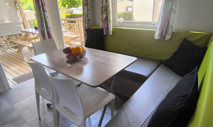 Between sea and forest, in a unique green setting, Mobil-Home 3 bed 4* campsite is located in Saint-Hilaire-de-Riez. Between sea and forest, in a unique green setting, Mobil-Home 3 bed 4* campsite provides accommodation, featuring Child Friendly, Balcony/Terrace, Sports/Activities, among other amenities. This House features Child Friendly, Balcony/Terrace, Sports/Activities, to make your stay a comfortable one.
