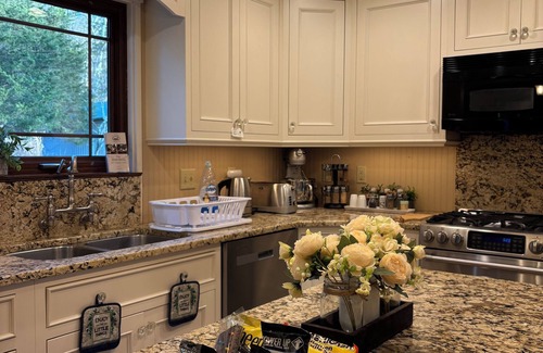 Relax or celebrate at this unique and tranquil getaway. This country charm offers 10 acres of hiking trails, spacious back yard for friends and family cookout/barbecue, spacious bedrooms, privacy, wildlife opportunities, and an amazing front porch view. Fully equipped kitchen.