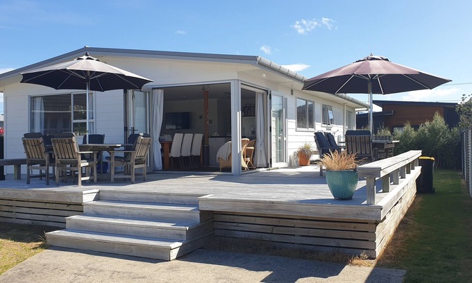 Best-rates for the Whangamata house starts from $162 per night with includes View, Ocean View, Security/Safety, Fireplace/Heating, Entertainment, Air Conditioner, TV, Oceanfront, Parking, Wellness Facilities, Internet, Kitchen, Balcony/Terrace, Barbecue/Outdoor Cooking, Child Friendly, Laundry StayAndPlay offers fully equipped golf villas, golf hotels, golf resorts, luxury golf cabins, and exclusive golf retreats, making it easier than ever to find your perfect golf escape — ideal for families, peaceful getaways, or pet-friendly retreats with the whole crew.