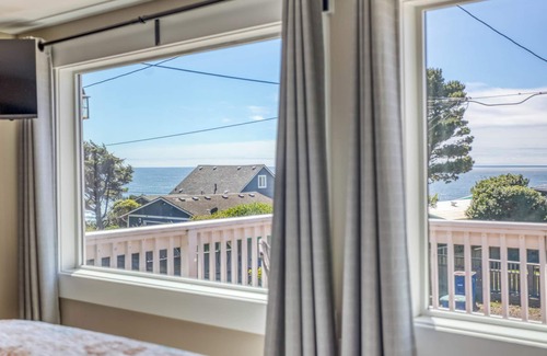 Enjoy enchanting ocean views over Newport’s expansive Beverly Beach from Coastal Livin, a beautifully updated home with a wrap deck for enjoying sunsets over the Pacific. A king master suite has picture windows to take advantage of the ocean view. Updated throughout, the home features new flooring, contemporary furnishings, and fresh décor for a refreshing, relaxing stay. The living room has ocean views, deck access, a TV, and a fireplace for a warm, inviting space for guests. A formal dining room adjoins a completely updated kitchen with quartz counters, a breakfast bar, and stainless-steel appliances. Downstairs, two queen bedrooms share a full bath.