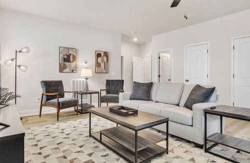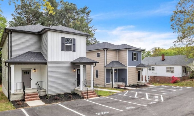 Welcome to the Beverly Place retreat, located just 1 mile from Downtown Greer! Rent the entire 4-unit property, offering 8 spacious bedrooms & 8 bathrooms. Accommodating up to 16 guests, it's ideal for reunions, weddings, or any event. Each unit features 2 bedrooms, 2 baths, stylish decor, and premium amenities. Enjoy the 8 dedicated parking spaces. Unwind in the serene patio area, boasting a cozy fire pit for evenings under the stars. Experience an unforgettable stay at Beverly Place.