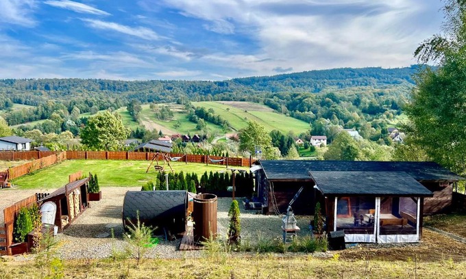 23 miles from Skansen Sanok in Solina, Bieszczadzka Osada Saunowisko w cenie jacuzzi na wyłączność, sauna basen features accommodations with access to a sauna, hot tub, and beauty services. This property offers access to a terrace, free private parking, and free Wifi. Guests can make use of the outdoor fireplace or the picnic area, or enjoy views of the mountain and garden. At the chalet complex, each unit has air conditioning, a seating area, a flat-screen TV with streaming services, a kitchenette, a dining area, and a private bathroom with bathrobes, a shower, and a hair dryer. A fridge and kitchenware are also available, as well as a coffee machine. At the chalet complex, every unit comes with bed linen and towels. Guests at the chalet will be able to enjoy activities in and around Solina, like hiking and walking tours. Guests can swim in the pool with a view, go skiing or cycling, relax in the garden, and use the barbecue facilities. The Solina Dam is 4.4 miles from Bieszczadzka Osada Saunowisko w cenie jacuzzi na wyłączność, sauna basen, while Sanok Castle is 23 miles from the property. Rzeszów-Jasionka Airport is 74 miles away.