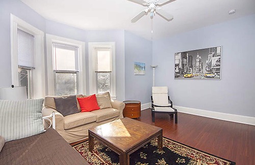 It is large, private, with a bedroom, dinning room, bathroom and extra large Living room. It has lots of sunlight and is well appointed located on the 2nd floor of the house. The living room has a sofa, chair, an LCD TV and a day bed which sleeps 2, an air-mattress can be provided to accommodate a fifth person. The bedroom has a queen-size bed, a night table, wardrobe and a closet. The Kitchen/Dining room has a small refrigerator, an induction heat plate, microwave, large convectional toaster and a coffee machine. If you're planning to prepare a lot of meals for yourself during your stay please note that the kitchen does not have a sink. This doesn't bother most guests that come to NYC to be out and explore the food of NYC.