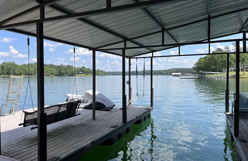 Sleeps 14 in beds. 4 br/ 3 baths. Dining room seats 6 with additional 2 at the bar. Three living areas ALL with Lake Views! (One located in main house, 2 living areas located in garage). No tv in the main living room.