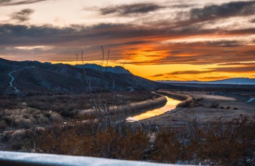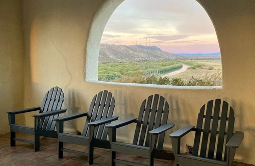 Newlywed, Retired, Family, Friends....You know who you are! Imagine sipping your favorite beverage as you gaze through an open arch of the 1,000 sq. ft. porch of your vacation home, La Centinela, to see a spectacular rainbow sunset reflecting on the Rio Grande River. Located on a private ranch along FM 170/The River Road just 7 miles SE of Presidio, Texas and a few miles more to the entrance of Big Bend Ranch State Park, this custom adobe exudes Big Bend Luxury: a well-equipped kitchen, pillowtop king mattresses, organic linens, spa products & yes, A/C! This clean and custom house goes beyond glamping and still comes in under budget for the value.