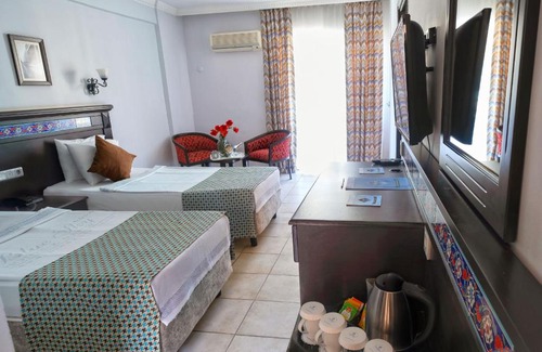 Facing the beachfront, Big Blue Sky Hotel - All Inclusive offers 4-star accommodations in Alanya and features an outdoor swimming pool, garden and shared lounge. A 6-minute walk from Portakal Beach and 1.7 miles from Alanya Ataturk Square, the property has a private beach area, as well as a bar. The hotel provides city views, a terrace and a 24-hour front desk. At the hotel every room includes air conditioning, a seating area, a flat-screen TV with satellite channels, a safety deposit box and a private bathroom with a shower, free toiletries and a hairdryer. Rooms are equipped with an electric tea pot, while certain rooms will provide you with a balcony and others also provide guests with sea views. At Big Blue Sky Hotel - All Inclusive every room is equipped with bed linen and towels. A buffet, continental or Full English/Irish breakfast is available every morning at the property. At the accommodation you'll find a restaurant serving American, Cajun Creole and Catalan cuisine. Vegetarian, dairy-free and halal options can also be requested. You can play pool, table tennis and darts at Big Blue Sky Hotel - All Inclusive, and the area is popular for cycling. Alanya Aquapark is 2.9 miles from the hotel, while Alanya Archaeological Museum is 3 miles away. The nearest airport is Gazipaşa-Alanya, 23 miles from Big Blue Sky Hotel - All Inclusive, and the property offers a paid airport shuttle service.