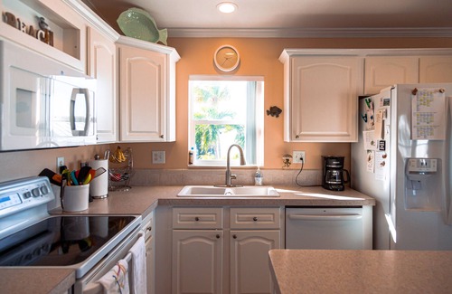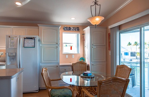Our vacation home in the Lower Keys awaits your arrival! We live here during the winter so our home is available spring - fall. The gated, community of Venture Out has all of the amenities that you could want for a sunny getaway. Lounge by, and swim in the heated pool or salt water canal. Play pool, ping pong, tennis or pickle ball with family and friends. Gather together a group for a game of bocce. Forgot a "good read"? No worries - we have a well-stocked library. There's a playground as well as a kiddie pool for the little ones in the family. Four adult bikes are provided, with miles of bike paths along the Overseas Hwy. It's an easy bike to Mangrove Mamas for bloodies and brunch or to The Square Grouper for a delicious meal & nightly entertainment. Venture Out is located at MM 23 so if the hubbub, nightlife, and shopping of Key West is your pleasure, you will not have far to drive. Our house is maintained, not as a rental, but as our home, since we do live here during the winter. We have 2 bedrooms and 2 baths and are situated on a 60' canal. You can park your boat at our 35' seawall for easy access to fishing, boating, and sunset sails. The dock is complete with cleats, bumpers, fish cleaning table and swim ladder. Your boat must fit tip to tip with the motor up within the 35'. You will have access to our store room with a bait freezer and area to keep dive and fishing gear. There are 2 covered decks - one facing the street and one facing the water. There is additional seating under the home facing the canal. On the water front you will have outdoor seating on both the upper and lower decks with a gas grill. Our kitchen is completely stocked with everything you could possibly need for a home cooked meal. There are smart TVs in both bedrooms and the living room. WIFI and landline from which to call the USA, Mexico and Canada is provided free of charge. The home sleeps 6 (maximum allowed per Venture Out rules) with a king bed, queen bed and queen sleeper sofa. We speak French and English. Please no pets or smoking allowed. There is a 3 night minimum stay except during Lobster Season which requires a 7 night minimum.