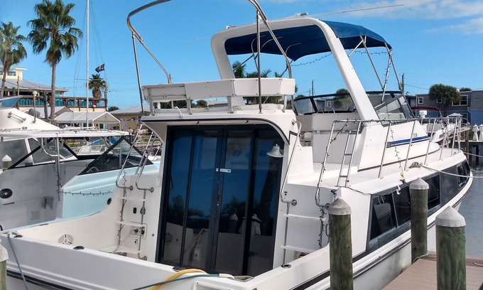 Thank you for viewing our listing of the Big Boat Hotel. Listed here is a classic and clean 40 Ft cabin cruiser boat hotel. The boat is equipped with two bedrooms, two pull out couches, working toilet, small kitchen with fridge, air conditioning and more! We like to think of this adventure almost as if its like RV-ing on water.This adventure is fun for everyone and we hope you choose to book with us!