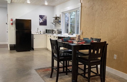 Big Cedar House is a versatile structure with 2600 sf and 3 stories. Each level has sleeping arrangements with cozy blankets, comfy pillows, and a clean bathroom. Each level of this newly (2019/2020) built home has a covered porch facing the cedar trees for sunset colors peeking through the pines. A perfect spot to breathe deep, let your shoulders relax, and uncork a bottle from the local winery.