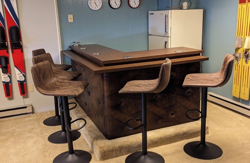 When you've had your fill of water or snow, you can retire back to the house to throw dinner on the BBQ grill and head out to enjoy s'mores over the fire pit. Regulation-size ping pong and air hockey tables, as well as a multitude of lawn games, are located in the garage to start some trash-talking tournaments. For the Wordle fanatics in the group, WIFI is available on the property, and the 65-inch TV in the bar/game room provides a perfect movie location for those who aren't "athletically inclined"!