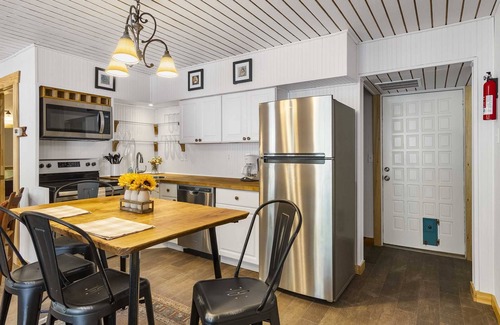 Inside, you'll find comfortable space in the living area, along with a dining table that seats four. There's a fully-appointed kitchen, with appliances for meal prep, and a dishwasher for cleanup afterward. Cooking ware, dining ware, glasses, and utensils are provided, too! Central air and heat keep the comfort level to your liking.