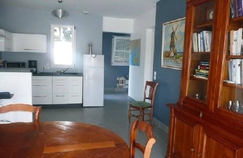 Spacious living room including a fully equipped kitchen, a back kitchen, a lounge The plus: 200m from the beaches and swimming and 700m from the village. Housing located in an area inhabited year-round, not isolated and quiet. cleaning fee 80 euros optional. To be paid on the spot