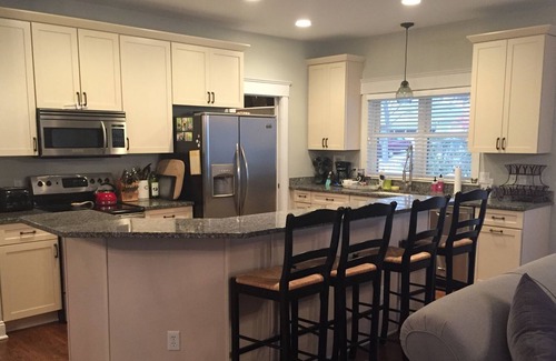 Charming and comfortable 2500sf "home away from home" in ideal game day location. Walk a few quick blocks (less than a half mile!) to the stadium, or enjoy the game inside on one of the two flat screen TVs. 1 mile from downtown Main Street coffee shops, dining, bars; 2.5 miles to mall & grocery. Hear the stadium roar- rain or shine- from our beautiful covered 660sf wrap-around porch with multiple seating and eating areas. Large park across street for your pickup football game. Open concept living/dining/kitchen perfect for socializing. Upstairs and downstairs living areas with flat screen TVs. New hardwood floors throughout. 4 beds and two queen air mattresses w/linens also provided at guest's request to comfortably sleep 8 guests.