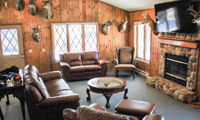 Tradition continues with the lodge being owned by avid hunters and fishermen; the Lodge is sure to indulge in all of your rustic, woodsy, & nature loving senses. The Lodge is decorated with over 10 mounts and boast beautiful knotty pine walls. The Lodge is equipped with leather living room furniture & a hand-crafted log dining table that seats 8 guests. A second table allows for additional seating.