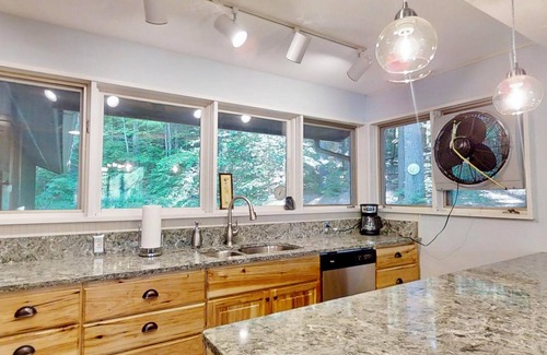 Hike anywhere around the property/ off the property as it is completely surrounded by National forest. Enjoy the brightest stars at night or a movie on our 86 inch smart tv.