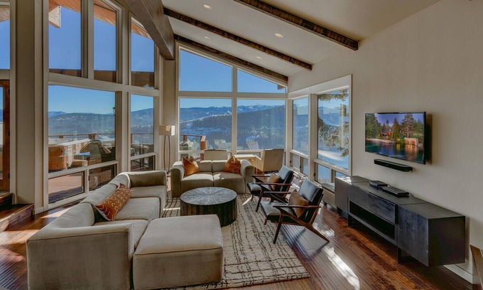 Welcome to Big Sky! When you set foot in this stunning contemporary mountain lodge with spectacular 180-degree views of Donner Lake and the Sierras, it will take your breath away. Relax and enjoy the surrounding peace and tranquility of Tahoe Donner, in this magnificent 4,650 square foot home with large, spacious open plan layout. Big Sky offers the most discerning of guests, the perfect mountain get-away-from-it-all. There are two king bedroom suites with luxurious bathrooms - plenty of room and privacy for multiple families looking to vacation together.