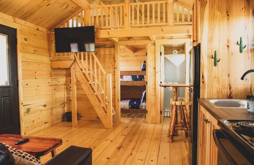 Based on the information received from our partner, the Big Texan Cabins Summ has not specified they are wheelchair accessible. Likewise, there is not an elevator specified as being available at the property. Specific accessibility details may be addressed in the property details section of this page.