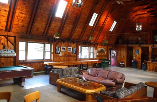 The Moose House is designed with entertainment space in mind. An enormous common area where your crew can play pool & shuffleboard, where dozens can dine or just relax by a big glassed-in fireplace. Just outside sits a tennis court, which looks down over a beautiful pond and small beach area - great for fishing, swimming, kayaking (feel free to bring your own) or just skipping stones.