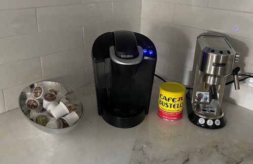 House has a Keurig machine, standard coffee maker and espresso machine available for use.