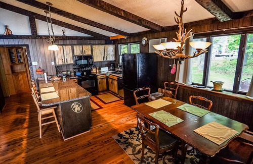 This is a beautiful property with a gorgeous lake view of mountains with your own personal dock. Great swimming area, and fishing. kayak, paddle board and canoe available to use. Check in is at 4 pm and checkout is 10 am. There is a Blink camera on the garage door for safety reasons and security. There are bears, deer, wolves in the neighborhood.