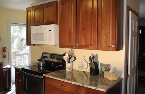 A quiet driveway with plenty of parking leads up to this charming family friendly property, featuring all the comforts of home, including a fully equipped, beautifully renovated kitchen, air conditioning, wireless internet, cable TV and more.