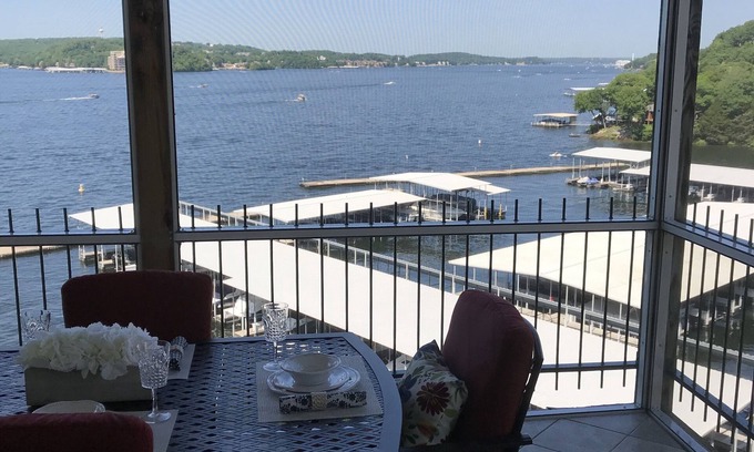 VIEW--VIEW--VIEW...Lakefront, top-floor, 3BR, 2Bath unit with BREATH-TAKING 7-mile view of the Main Channel. No long, winding lake roads to get to the unit to start your vacation or return from a night of fun. Top-level unit. Vaulted ceilings. Stone electric fireplace. Granite counters. Stainless appliances. Wood floors throughout. Walk-in showers in baths. Wi-Fi included. 2 Pools--1 Heated--opens in May and closes in October. WORK FROM THE CONDO--Wi-Fi and printer included. Convenient to everything The Lake has to offer by both land and water. Located just 1 mile from Bagnell Dam by water and 5 minutes from Hwy. 54 and the Bagnell Dam Strip. Uber is also available in this area. Rental includes 1 assigned parking space at stairwell to condo with additional parking near unit. 12' x 32' boat dock slip (no hoist) and waverunner slip (with hoist) located directly in front of building at no extra charge. A boat ramp is located less than a mile (.7) from the complex. Point Randall Gas Dock is located directly across the lake. A "wave break" was installed to protect all docks and watercraft. On-site (unsecured) trailer parking is available for $10.00 per day charged by condo association. Master BR facing The Lake features a King bed with lakefront deck access, walk-in closet, ceiling fan, 44" flat-screen Roku TV, and private bath with walk-in shower. You will wake up to an Incredible VIEW for miles down The Lake. BR2 features a Queen bed, ceiling fan, and 42" flat-screen Roku TV with access to 2nd Bath with walk-in shower. BR3 features Twin beds, ceiling fan, and 42" flat-screen Roku TV. Large family room with 55" Samsung TV and new electric fireplace with stone from floor to ceiling. Family Room adjoins a spacious dining area for gathering, eating, and enjoying the FABULOUS LAKE VIEW. Kitchen is FULLY EQUIPPED with Fiesta Ware dishes, utensils, pots, pans, Keurig coffee maker, Mr. Coffee maker, bean grinder, blender, air fryer, paper products, etc. Lakeside deck is fully-screened with a ceramic tile floor and ceiling fan. It has furniture that seats 6 comfortably and has its own acrylic dishware, a Roku TV, Visio soundbar, and beverage refrigerator. Gas grill is located on Front Deck. Designated “Smoking Area” with bistro chairs and table located on Front Deck. Stocked Laundry Room with a full-sized washer and dryer is located off the Kitchen. The larger of the 2 swimming pools is "heated" and is located next to this condo building (a 2-minute or less walk) with plenty of lounge chairs, tables with umbrellas, shady areas, and restrooms. Clubhouse contains vending machines, an exercise room with new equipment, and a reading room. Tennis courts, pickleball courts, walking trail, Lakeside promenade, and play area for kids located in complex within easy walking distance. Fishing is permitted off Lakeside promenade and boat docks. No swimming from docks though. PACK YOUR CLOTHES ONLY BECAUSE EVERYTHING ELSE IS INCLUDED!!! Harbour Towne is one of the nicest complexes in the entire lake area--guaranteed! Area amenities include: Lakeside restaurants and bars with bands; marinas with boat, waverunner, and jet ski rentals; 13 golf courses, including Osage National, which is less than a 10-minute drive; the largest state park in Missouri; multiple wineries, distilleries, caves, and water parks; historic HA-HA Tonka State Park and Wilmore Lodge (must sees!); tons of other water sports; and many local events, including car shows, bike fests, boat races, fishing tournaments, festivals, and concerts. This condo has a front-row view of the “Shoot-Out” boats' test runs, as well as multiple area fireworks displays and sailboat regattas. You may even get a glimpse of Santa and his Elves on jet skis on the Fourth of July. Local wildlife is abundant--Deer, turkeys, eagles, and foxes. Even more spectacular is the Fall foilage. This truly is a terrific venue for your next family vacation, couple get-away, or girls' or guys' trip at the beautiful Lake of the Ozarks (Voted the Number 1 Recreational Lake in the U.S.). Easy access from St. Louis, Kansas City, and Des Moines. See Funlake website for more area attractions. Upcoming 2025 Lake of the Ozarks schedule includes: Mardi Gras Pub Crawl - February 22; St. Patrick's Day Parade and St. Patrick's Day Pub Crawl - March 15; Bagnell Dam 5K, 10K, Half, and 25K Marathons - April 12; Spring Big Bass Bash - April 12-14; Dogwood Festival - April 24-26; LOMDA Spring In The Water Boat Show - April 25-27; Magic Dragon Street Meet - May 2-3; Spring Harbor Hop - May 3; Ozarks Rides Rally - May 8-10; Hot Summer Nights - May 9; Memorial Day Fireworks (at various locations) - May 23-26; Hot Summer Nights - June 13; Shootout Offshore - June 21-22; Fourth of July Fireworks (at various locations) - July 3-6; Hot Summer Nights - July 11; Aquapalooza (at Captain Ron's) - July 19; Hot Summer Nights -August 8; Mini Shootout - August 16-17; Shootout On The Strip Street Party - August 20; Captain Ron’s First Annual Cannonball Run - August 16-23; Shootout - August 23-24; Labor Day Weekend Fireworks (at various locations) - August 29-September 1; Hot Summer Nights - September 5; Kids' Fishing Derby - September 7; Lake Of The Ozarks Air Show - September 12 (2026); Bikefest - September 10-14; LOMDA Fall In The Water Boat Show - September 19-21; Mountain Man Festival - September 19-21; Jeep Invasion - September 25-28; Eldon Turkey Festival - September 27; Versailles Olde Tyme Apple Festival - October 4-5; Fall Big Bass Bash - October 4-5; Fall Harbor Hop - October 11; Osage Beach Fall Festival - October 11; Buddy Bass Open Bass Tournament - October 31-November 1; and Lake Ozark Christmas Parade - December 13. And don't forget the brand new Magic Dragon Trails for bicycle enthusiasts--a terrific place for kids! Ozark Amphitheater Events: Nate Bargatze - May 16; Ian Munsick - May 24; Dwight Yoakam - May 31; Bare Naked Ladies - June 13; Billy Currington - June 14; Warren Zeiders - June 26;