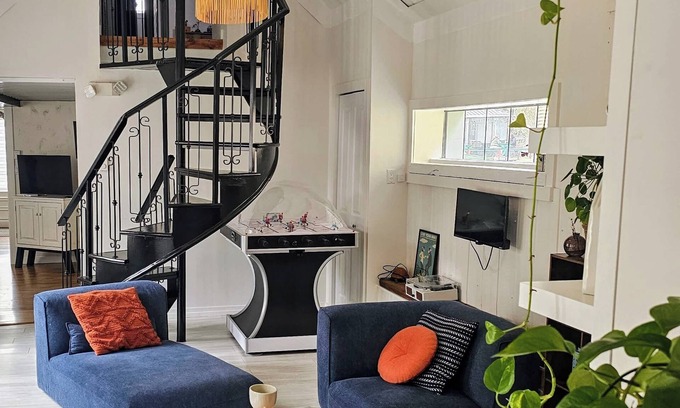 - Discover a home blending historic charm and modern comfort with unique decor.