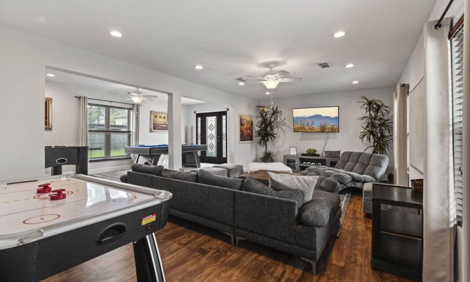 Step into our spacious and centrally located Houston Haven! Crafted with family and friendly gatherings in mind, our oasis brings people together. Engage in lively competition between your family and friends with our Foosball, Air Hockey, Billiard, and Ping Pong Tables, or our many games and board games! Enjoy the blissful embrace of our light massage chair and Jetted bathtub. With ample parking, our home effortlessly cradles up to 12 guests. Create your long lasting Houstonian memories!