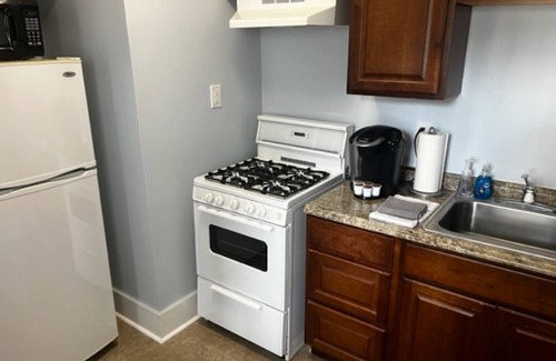 This bungalow is ideally located only steps away from MGM Park, Home of the Biloxi Shuckers, the Beau Rivage, and the Hard Rock Casino. Only a short stroll from the famous Mary Mahoney's Restaurant, Ground Zero Blues Club and many other local bars and restaurants. Visitors to our bungalow can enjoy Cruisin' the Coast, the Parades of Mardi Gras, local sporting activities, the beach, fishing marinas, and our Small Craft Harbor without ever getting into a car. Wake up early and have coffee on the front porch, this bungalow is the perfect spot for getting away for the weekend and having a comfortable, convenient place to enjoy with all the amenities of home. The kitchen is quaint with all the necessities you'll need if you deicide to eat-in. The living room is spacious and equipped with a Smart TV, and of course, streaming internet. The bedroom has a King sized bed and also has a Smart TV.