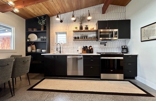 Accommodation: Our well laid out single level bungalow offers 2 bedrooms and 1 bathroom, comfortably accommodating up to 4 guests. The serene master bedroom has a comfortable King size bed and luxurious linens. The stylish second bedroom is furnished with a Queen size Endy mattress and pillows. Both bedrooms are equipped with Smart TV's for ultimate comfort and relaxation.