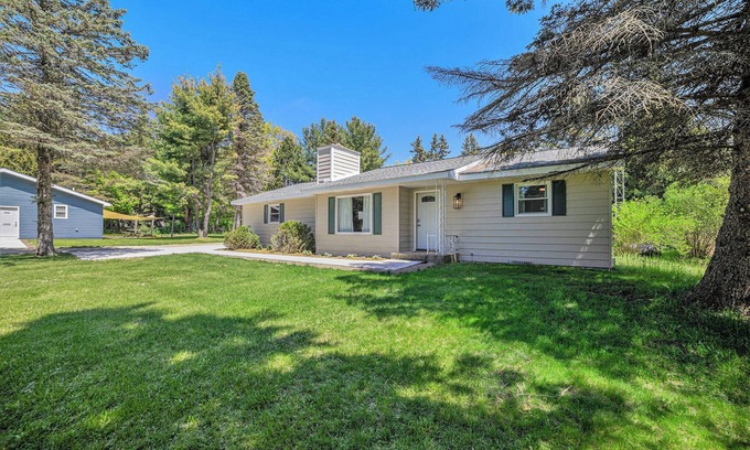 Discover the perfect blend of lakeside charm and the modern ambiance of Alden, MI. Conveniently located between Traverse City and Charlevoix Michigan, check out our updated Birch Cottage. This 3 bed/2 bath home features every modern amenity to comfort you and your guests. With direct shared frontage to Thayer Lake, you’ll enjoy a secret paradise for fisherman. The Cottage comes with shared use of our guest kayaks, canoes and access to our private sandy beach. You can see the lake from the kitchen and patio. As an added convenience, guests can utilize their own in-unit washer and dryer. The living room features the added bonus of a queen sleeper sofa for additional guests. Relax outdoors with your private bonfire pit, outdoor seating and grill.