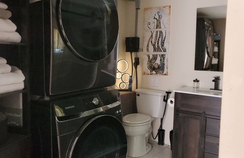 This listing if for the 1 bedroom/1 bathroom, fully private, apartment. It does not have a standard sized oven.