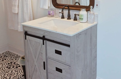 The first floor opens into a spacious dining area and kitchenette. Enjoy a luxurious breakfast served continental style on our dining tables or lounge on our outdoor patio with bistro table. At night, warm yourself in front of our fire pit under the stars. With the addition of our outdoor grill you can make it a BBQ night.