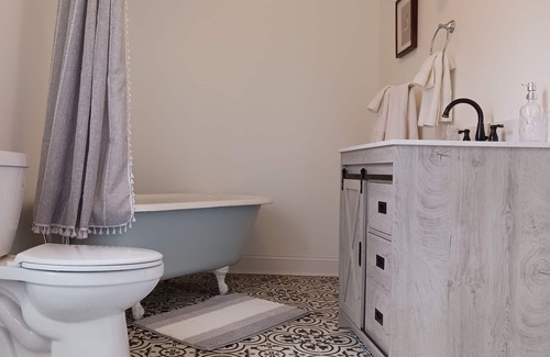 The Bird Nest Suite offers a luxurious hybrid king bed. Inside the private bathroom you will delight in soaking in our antique cast-iron tub with shower. Brew some coffee from the in-room Kuerig, slip on a terry robe, and relax in a true haven of comfort.