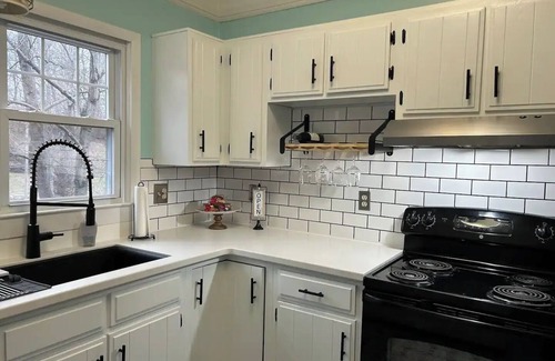Relax by the fireplace, enjoy a cup of coffee on the enclosed front porch, or stroll a half mile to the many attractions that historic French Lick has to offer. This quiet and cozy spot atop the end of a charming historic street adjoins a wooded area and offers a spectacular view of French Lick Resort. The renovated fully stocked kitchen has a dining nook and coffee station including a French press and Keurig. The living room features a reading area, fireplace, sleeper sofa, and is a perfect place for a family game night. Both bedrooms have queen beds and the front bedroom offers a unique workspace for checking emails.