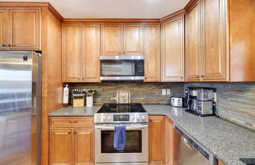 The large kitchen has everything you could possibly need to create your favorite meals, with dishware for 14. The spice cabinet is usually full for you as well! Take advantage of the beautiful granite island with seating for 4, always a popular place for all to gather as it offers so much prep space and storage.