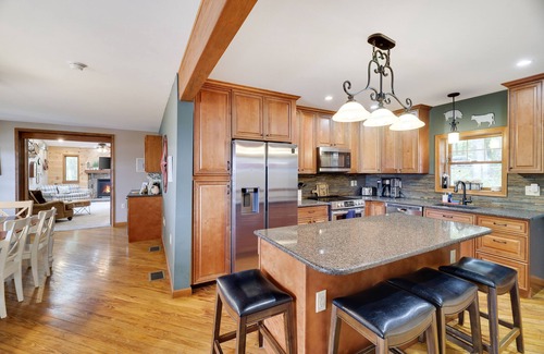 A massive 11 foot dining table will greet you in the heart of the home, with Gorgeous real hardwood floors adding to the Pocono charm.